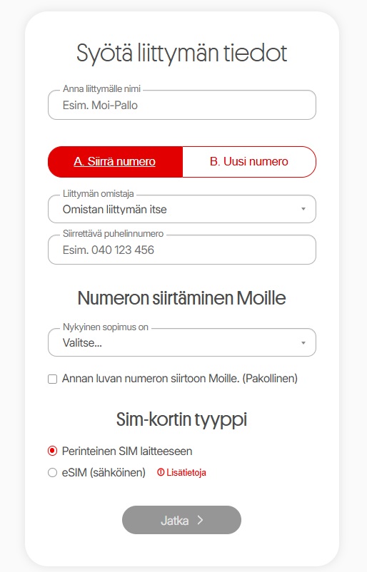 Kun vaihdat liittymäsi Moille, he hoitavat numeronsiirron puolestasi. Sinun ei tarvitse itse olla yhteydessä vanhaan operaattoriisi.